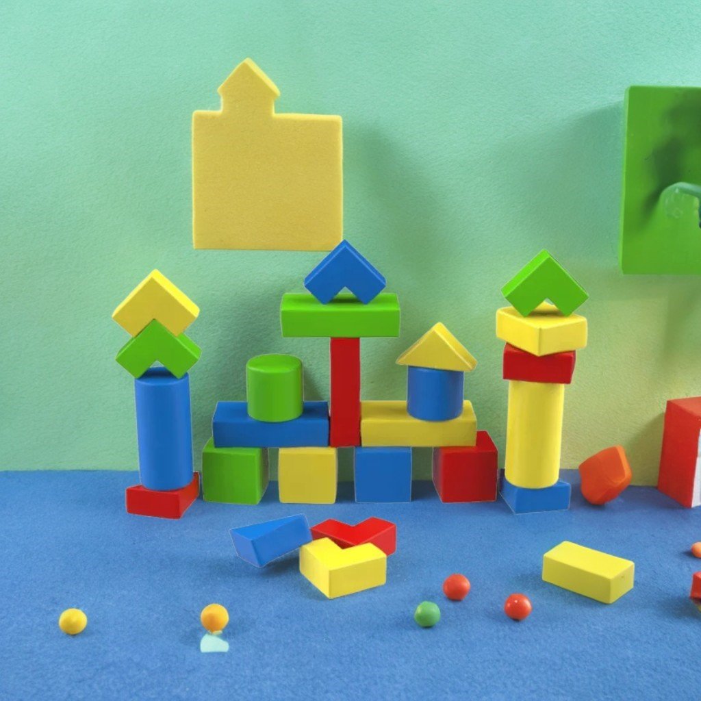 Комплект "Конструктор №2" включва 24 геометрични софтплей модула: Цилиндър – 2 бр Паралелепипед - 4 бр Хапче - 2 бр Блок – 2 бр Лък – 2 бр Триъгълник - 2 бр Полустъпка – 6 бр Кубче – 4 бр За творческо конструиране, развива въображението и двигателните умения. Обем: 0,61 м³, тегло: 20,2 кг. Материал: екологична кожа и дамаска