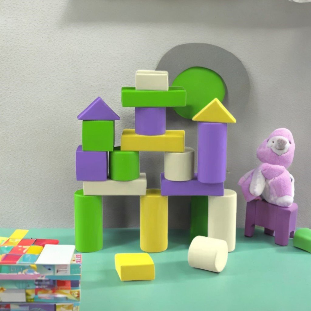 Мини-комплект "Конструктор №4" съдържа 18 геометрични софтплей модула: