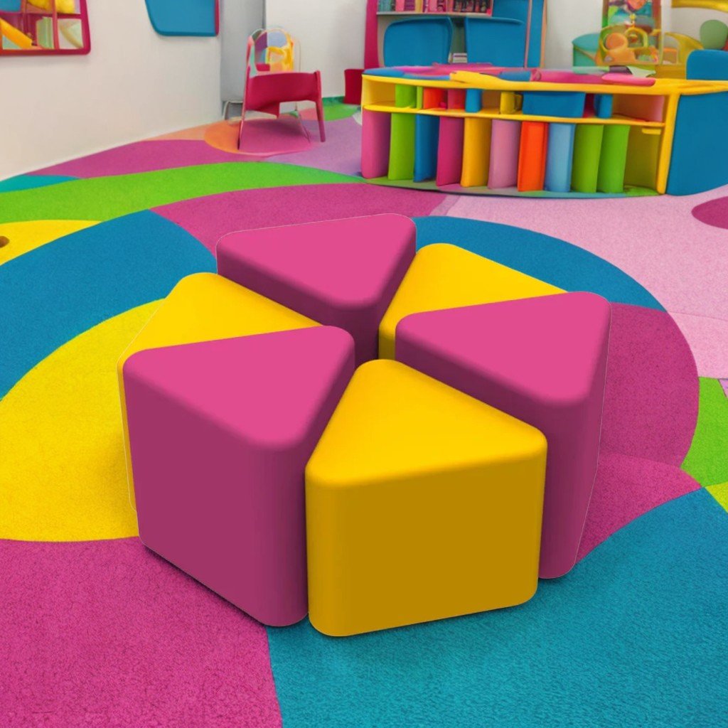 Комплект пухчета "Детелина" състоящ се от 6 разноцветни елемента. Децата могат да скачат и да играят на тях. Развива сръчност и изобретателност. Леко тегло, лесно за придвижване от деца. Без остри ъгли, безопасно за игра. Издръжлив, хипоалергичен, не абсорбира миризми и влага, устойчив на слънце и замърсяване. Плътност на порест каучук 22 kg/m³. Материал: PVC плат/Екологична кожа. Размери на бутер №1: 45х45х25 см, буф №2: 40х45х35 см. Общо тегло 2,8 кг. Обем 0,3 м³. Цветове: бяло-жълто-зелено-лилаво, жълто-червено-синьо-зелено, розово-жълто, зелено-жълто. Препоръчва се за сухи и проветриви помещения. Използване на открито само при сухо време. Не се намокря и не остава мокър след почистване. Почиствайте с обикновени домакински препарати, без хлор или разяждащи химикали.