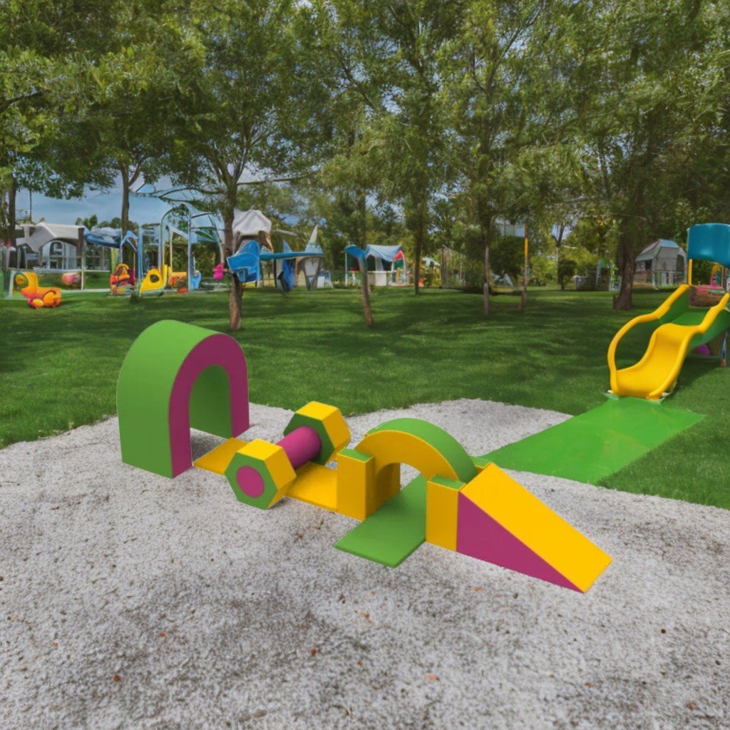 Елементите на състезанието могат да се пренареждат по желание, а децата могат да ги използват и за разнообразни игри.