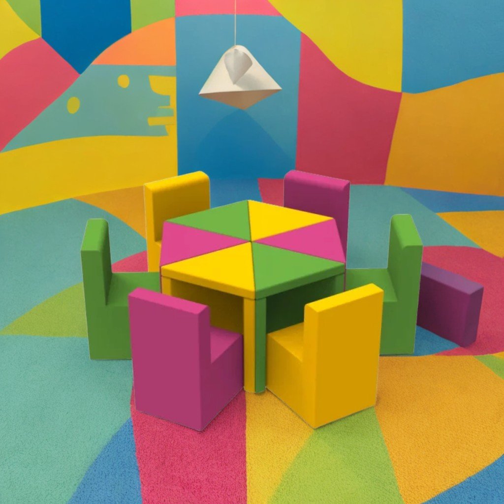Столът "Цвете" може да се използва като част от комплект мебели "Цвете" или като отделна част. Често се избира за детски градини, предучилищни заведения, стаи за игра в ресторанти и търговски центрове. Лекото тегло позволява на децата да го местят сами, а липсата на остри ъгли гарантира безопасност по време на игра. Столът е устойчив, хипоалергенен, не задържа миризми и влага, не избледнява на слънце и е лесен за поддръжка. Плътност на пяната: 22 kg/m³ Материал: PVC плат / екологична кожа Размери: 30×30×55 см Налични цветове: зелен / розов / жълт / лилав Употреба: препоръчва се в сухи и добре проветриви помещения; използване на открито само при сухо време. Поддръжка: почиства се с обикновени домакински препарати; избягвайте продукти с хлор или агресивни разтворители.