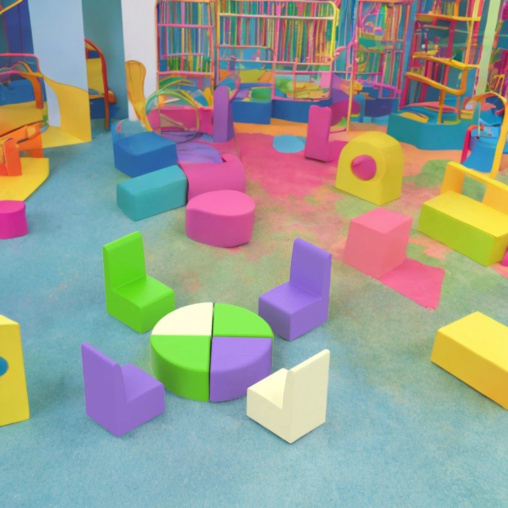 Комплектът се състои от четири стола и четири маси, всяка с височина 25см. Той е идеален за образователни игри и дейности както на закрито, така и на открито.