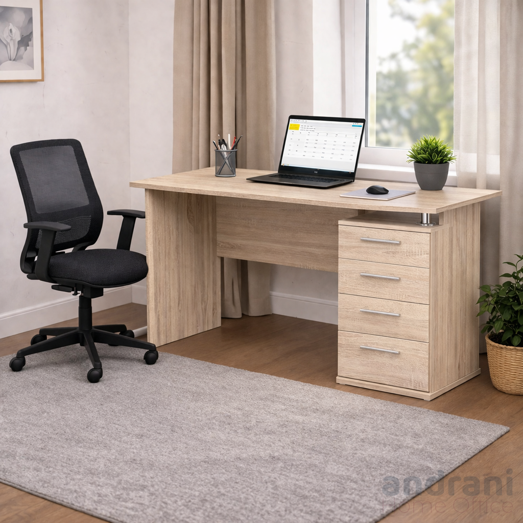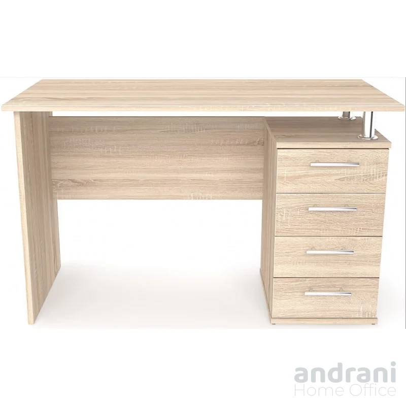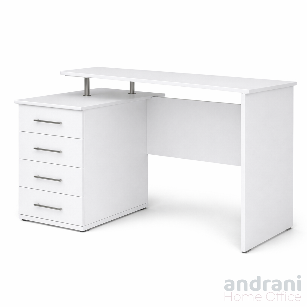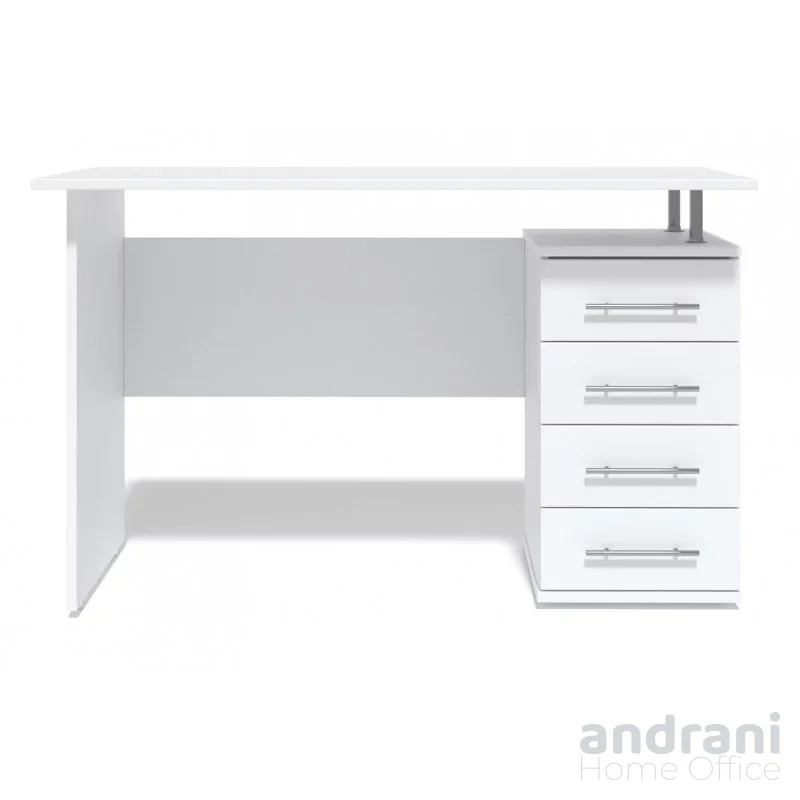Масата разполага със страничен шкаф с 3 чекмеджета и ниша, предлагащи достатъчно място за съхранение на документи и офис консумативи. Допълнителна напречна плоча осигурява стабилност на конструкцията.