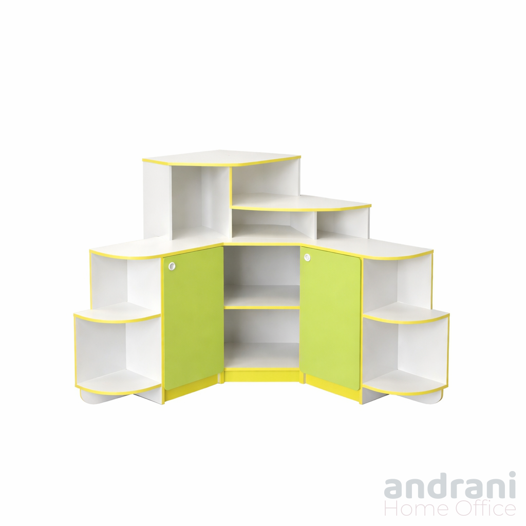 Размери: 1300 х 1300 х 1190 мм Ъглов шкаф изработен от 16 мм меламиново ПДЧ, емисионен клас Е1, с чела, обработени с 0,5 и 1 мм ABS кант в жълт цвят. Включва отворени рафтове за излагане на растения и затворени рафтове за съхранение на инструменти за грижа. Всички ъгли са заоблени за максимална безопасност. Шкафът е снабден с издръжливи пластмасови уплътнения, закрепен е към стената и се сглобява със сигурни крепежни елементи. Налични цветове: жълто/светло зелено жълто/червено червено/синьо жълто/зелено