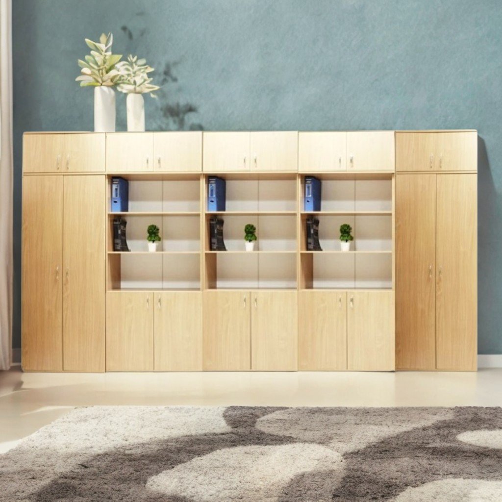 Размери (Д×Ш×В): 4010×403×2186 мм. Комплект мебели от меламиново ПДЧ с дебелина 18 мм. Фасадата е завършена с ABS кант 1 мм, а вътрешните части с ABS кант 0,5 мм. Гърбът е изработен от 3 мм бял меламин PFL. Комплектът съдържа 5 отделения: 1 – с рафт и прибираща се хромирана овална лента 350 мм; 2, 3, 4 – по 3 ниши, 3 затворени рафта и висящи шкафове; 5 – с 5 затворени рафта и стенен шкаф. Шкафовете са свързани с дървени дюбели, имат хромирани дръжки и с регулируема височина и пластмасови крачета. Частите се сглобяват със специални и сигурни крепежни елементи. Цветове: бук, светъл дъб.