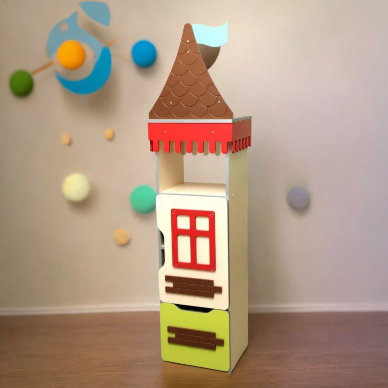 Този шкаф е с размери 460x380x1790 мм и е изработен от меламиново ПДЧ с дебелина 16 мм. Фасадата е декорирана с MDF тематични елементи и завършена с PVC лента 1 mm по краищата, а останалите части са защитени с PVC 0,5 mm. Гърбът е изработен от 3 mm меламин PFL, предлагащ солидна и издръжлива конструкция.