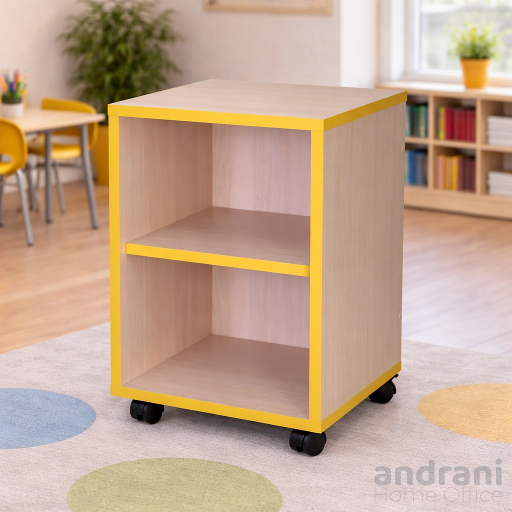 Размери (ДxШxВ): 400 x 400 x 590 мм Тегло: 14 кг Практичен скрин за класни стаи, с с регулируема височина и плъзгащ се рафт. Изработена от 16мм меламиново ПДЧ цвят светъл дъб. Детайлите са завършени с PVC лента 1 мм. Скринът е оборудван с колелца за лесно преместване. Закопчалките имат декоративен защитен слой. Цвят: светъл дъб