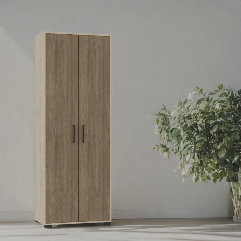 Размери (Д×Ш×В): 719×405×2025 mm. Шкафът е изработен от меламиново ПДЧ с дебелина 18 мм. Фасадата е завършена с ABS кант 1 мм, а вътрешните части с ABS кант 0,5 мм. Задната стена е от бял меламин PFL, с дебелина 3 мм. Шкафът съдържа 5 затворени рафта, а вратите са оборудвани с дръжки. Рафтовете ви позволяват да регулирате разстоянието между тях. Частите се сглобяват със специални и сигурни крепежни елементи. Основата на шкафа е оборудвана с с регулируема височина и пластмасови крачета. Налични цветове: занаятчийска перла, кафяв градски дъб, светъл дъб.