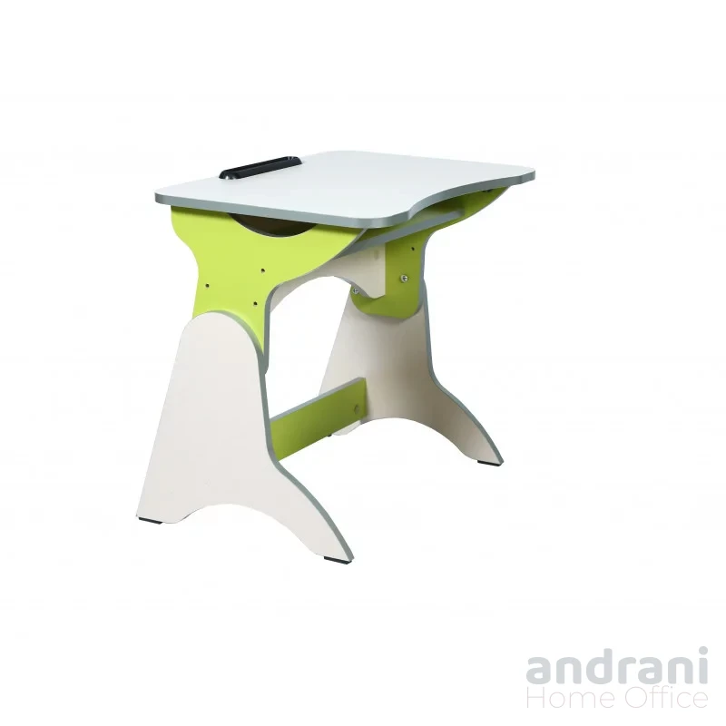 Масата е изработена от 16 мм меламиново ПДЧ с заоблени ръбове и 1 мм сребрист ABS кант, гарантиращи безопасност за детето. Вграденото отделение за химикалки и аксесоари улеснява организацията на пособията и поддържа работното място подредено.