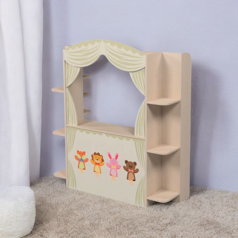 Мебелите Storyboard са специално проектирани да насърчават ролевите игри, творческото изразяване и взаимодействието между децата. Идеална за детски градини, образователни центрове или места за игра, тази мебел предлага както зона за излагане на куклен театър, така и множество места за съхранение. Конструкцията е изработена от 16 мм меламиново ПДЧ със защитен ABS кант (1 мм отвън, 0,5 мм отвътре), за издръжливост и безопасност. 8-те заоблени рафта позволяват организиране на играчки, кукли или образователни материали. Фасадата е декорирана с атрактивен фотопечат, покрита с акрилен лак на водна основа - нетоксичен, устойчив на почистване и износване. Системата за монтиране на стена и пластмасовите уплътнения добавят допълнителна безопасност при използване. Размери: 1360 × 460 × 1515 мм Тегло: 56,8 кг Цвят: светъл дъб Гаранция: 24 месеца