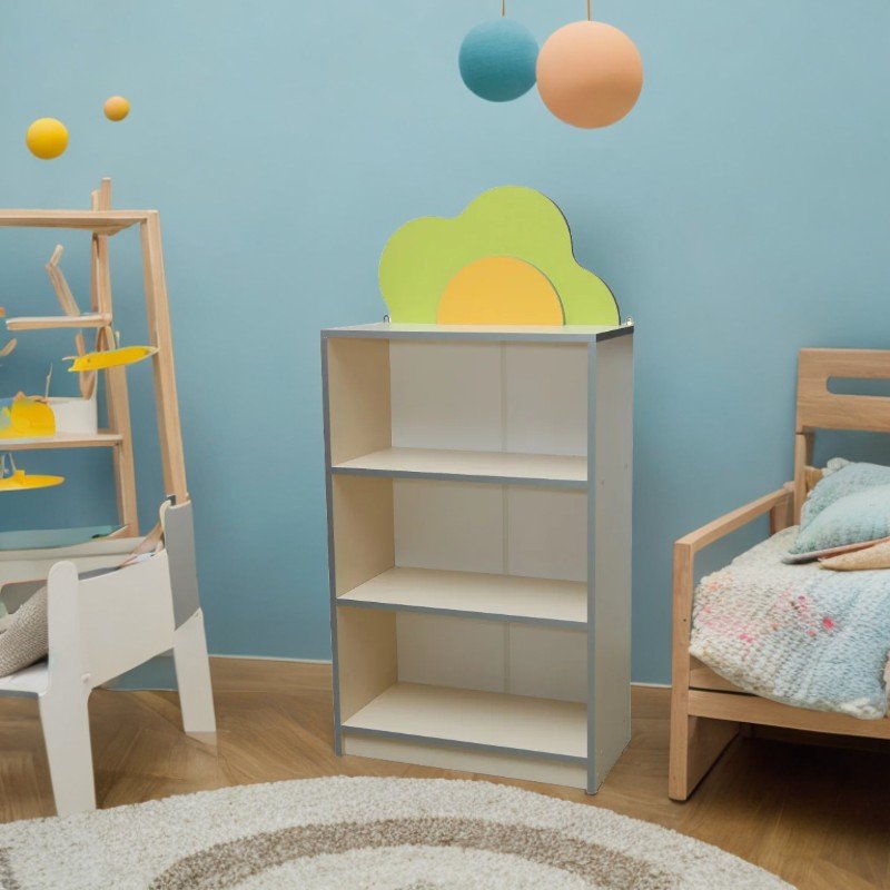 Размери (Д x Ш x В): 600 x 300 x 1247 mm Тегло: 18,50 кг Шкафът е изработен от меламиново ПДЧ с дебелина 16 мм, а задната стена е от бял меламинов PFL, с дебелина 3 мм. Фасадата е завършена с 1 мм сребрист ABS кант. Разполага с 3 отворени рафта за практична организация, а декоративен елемент във формата на цвете придава закачлива и приятна визия. Частите на шкафа са сглобени със специални крепежни елементи, които осигуряват здрав и сигурен монтаж. За безопасността на децата, шкафът е фиксиран към стената и е оборудван с издръжливи пластмасови уплътнения. Цветовете на шкафа са жълто, лайм зелено и бежово. Гаранционен срок: 24 месеца.