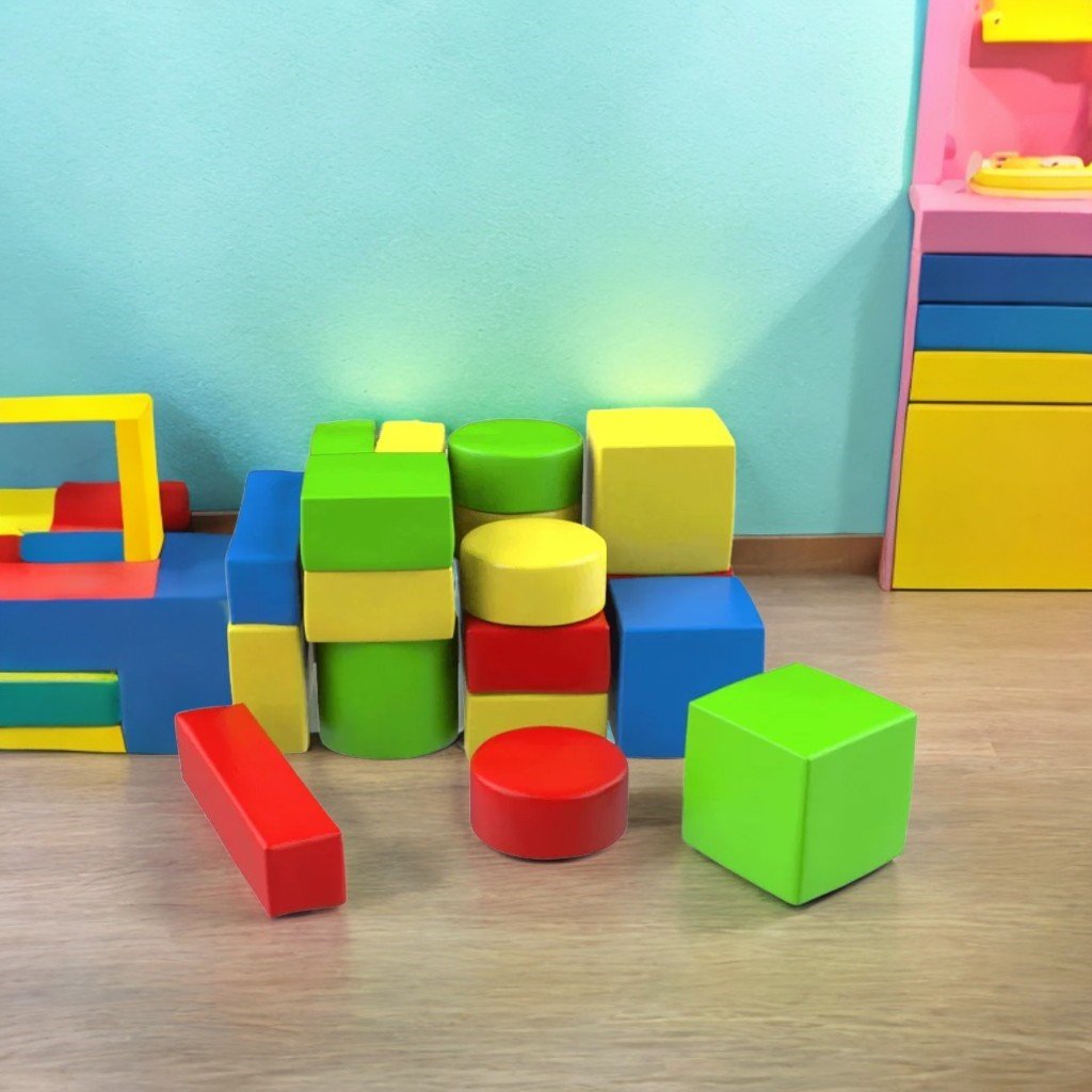 Комплект "Игра №10" се състои от 100 геометрични софтплей модула: