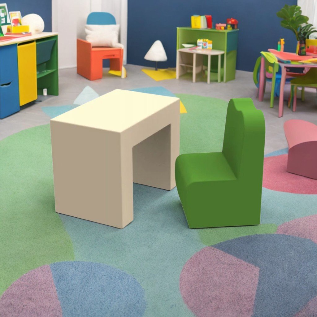 Мебелният комплект "Лотта " включва маса и стол, изработени от дунапрен, тапицирани с приятна на допир материя, подходящи за деца от 1 година. Лекото тегло позволява лесно преместване, а липсата на остри ъгли гарантира безопасност. Продуктът е издръжлив, антиалергичен, не абсорбира миризми и влага, не избледнява и е устойчив на замърсяване. Плътност на порест каучук 22 kg/m³, PVC материал или екологична кожа. Размери на масата 50×32×40 см, седалка 30×30×45 см, тегло 2,35 кг, обем 0,27 м³. Предлага се в бяло-зелено, червено-синьо, розово-жълто, жълто-лилаво. Препоръчително е да се използва в сухи и проветриви помещения, като почистването се извършва с домакински препарати, като се избягват продукти с хлор или разтворители.