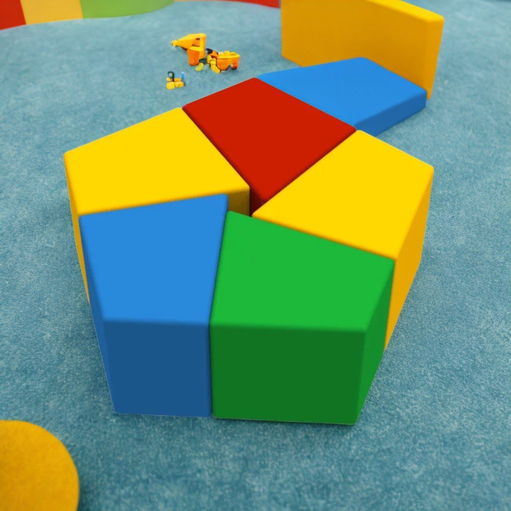 Комплект пуфове "Топаз" състоящ се от 5 разноцветни елемента с неправилни форми. Децата могат да скачат и да играят на тях. Развива сръчност и изобретателност. Леко тегло, лесно за придвижване от деца. Без остри ъгли, безопасно за игра. Интересна форма привлича децата. Издръжлив, хипоалергичен, не абсорбира миризми и влага, устойчив на слънце и замърсяване. Плътност на порест каучук 22 kg/m³. Материал: PVC плат/Екологична кожа. Количество: 5 броя. Размери: 76х79х40см. Общо тегло 2,7 кг. Обем 0,24 м³. Цветове: бяло-жълто-зелено-лилаво, жълто-червено-синьо-зелено, розово-жълто, зелено-жълто. Препоръчва се за сухи и проветриви помещения. Използване на открито само при сухо време. Не се намокря и не остава мокър след почистване. Почиствайте с обикновени домакински препарати, без хлор или разяждащи химикали.