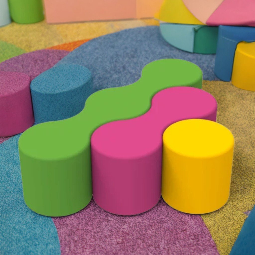 Комплект пухчета "Вал", състоящ се от 3 разноцветни елемента. Развива сръчността и изобретателността на децата. Леко тегло, лесно за придвижване от деца. Липсата на остри ъгли гарантира безопасност при игра. Издръжлив, хипоалергенен, не задържа миризми и влага, устойчив на слънце и замърсяване. Плътност на порест каучук 22 kg/m³. Материал: PVC плат/Екологична кожа. Размери 127х70х30см. Обем 0,27 м³. Цветове: бяло-зелено-лилаво, жълто-червено-синьо, розово-зелено-жълто, зелено-жълто-лилаво. Препоръчва се за сухи и проветриви помещения. Използване на открито само при сухо време. Не се намокря и не остава мокър след почистване. Почиствайте с обикновени домакински препарати, без хлор или разяждащи химикали.