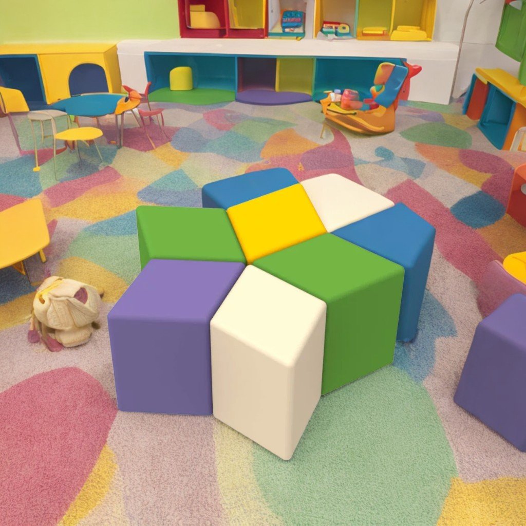 Комплект пухчета "Звезда", състоящ се от 5 разноцветни елемента. Децата могат да скачат и да играят на тях. Развива сръчност и изобретателност. Леко тегло, лесно за придвижване от деца. Без остри ъгли, безопасно за игра. Сглобени образуват звезда, интересна декорация за игралната зона. Издръжлив, хипоалергичен, не абсорбира миризми и влага, устойчив на слънце и замърсяване. Плътност на порест каучук 22 kg/m³. Материал: PVC плат/Екологична кожа. Размери 81х78х35 см. Тегло 2 кг. Обем 0,22 м³. Цветове: бяло-жълто-зелено-лилаво, жълто-червено-синьо-зелено, розово-жълто, зелено-жълто. Препоръчва се за сухи и проветриви помещения. Използване на открито само при сухо време. Не се намокря и не остава мокър след почистване. Почиствайте с обикновени домакински препарати, без хлор или разяждащи химикали.