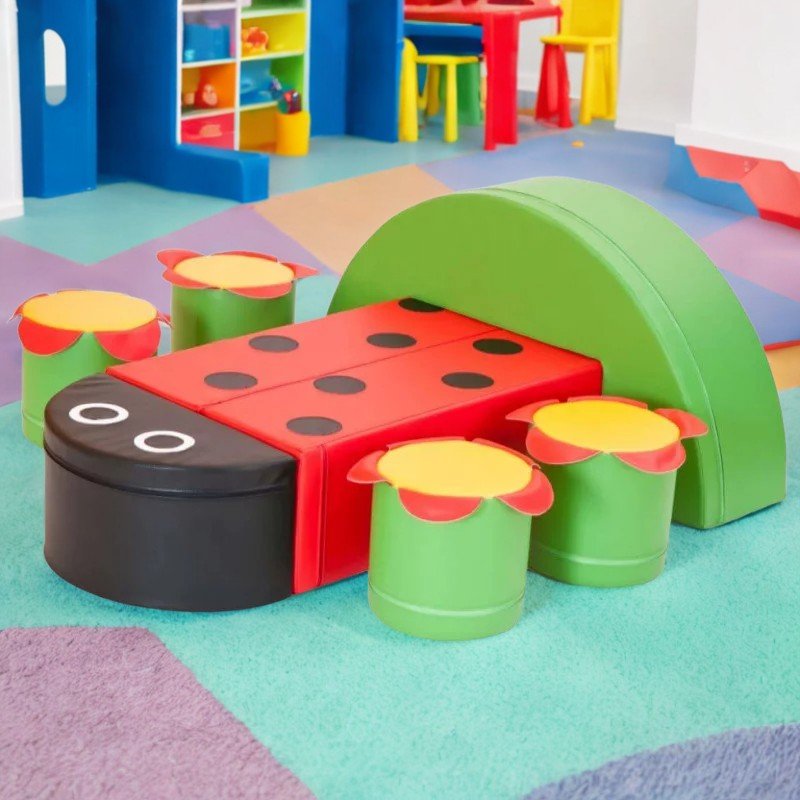 Ниското тегло позволява на децата да местят мебелите самостоятелно, а липсата на остри ъгли гарантира безопасност по време на игра. Мебелите са издръжливи, не предизвикват алергии, не абсорбират миризми и влага, не избледняват на слънце и са устойчиви на замърсяване