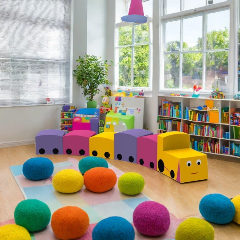 Комплектът "Влак" се състои от 6 разноцветни фигурки - 1 локомотив, 2 вагона тип 1 и 3 вагона тип 2