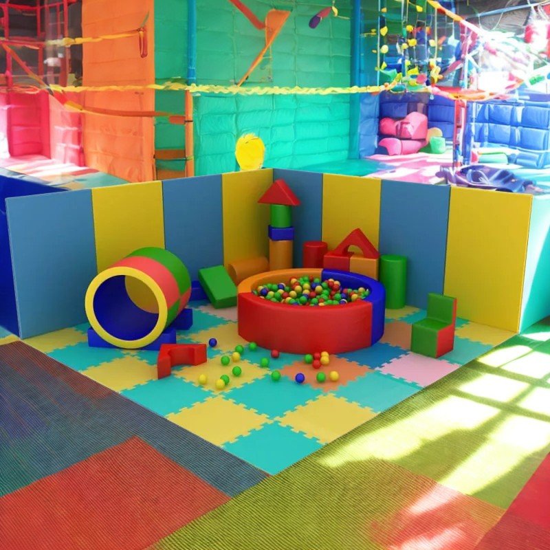"Playground" е балансиран и приветлив комплект за пространства, предназначени за малки деца, идеален за социализиращи дейности, движение и образователни игри. Кръглата форма на сухия басейн осигурява атрактивна централна зона, около която децата могат да строят, изследват и взаимодействат. Комплектът е подходящ за детски градини, учебни центрове и закрити площадки.