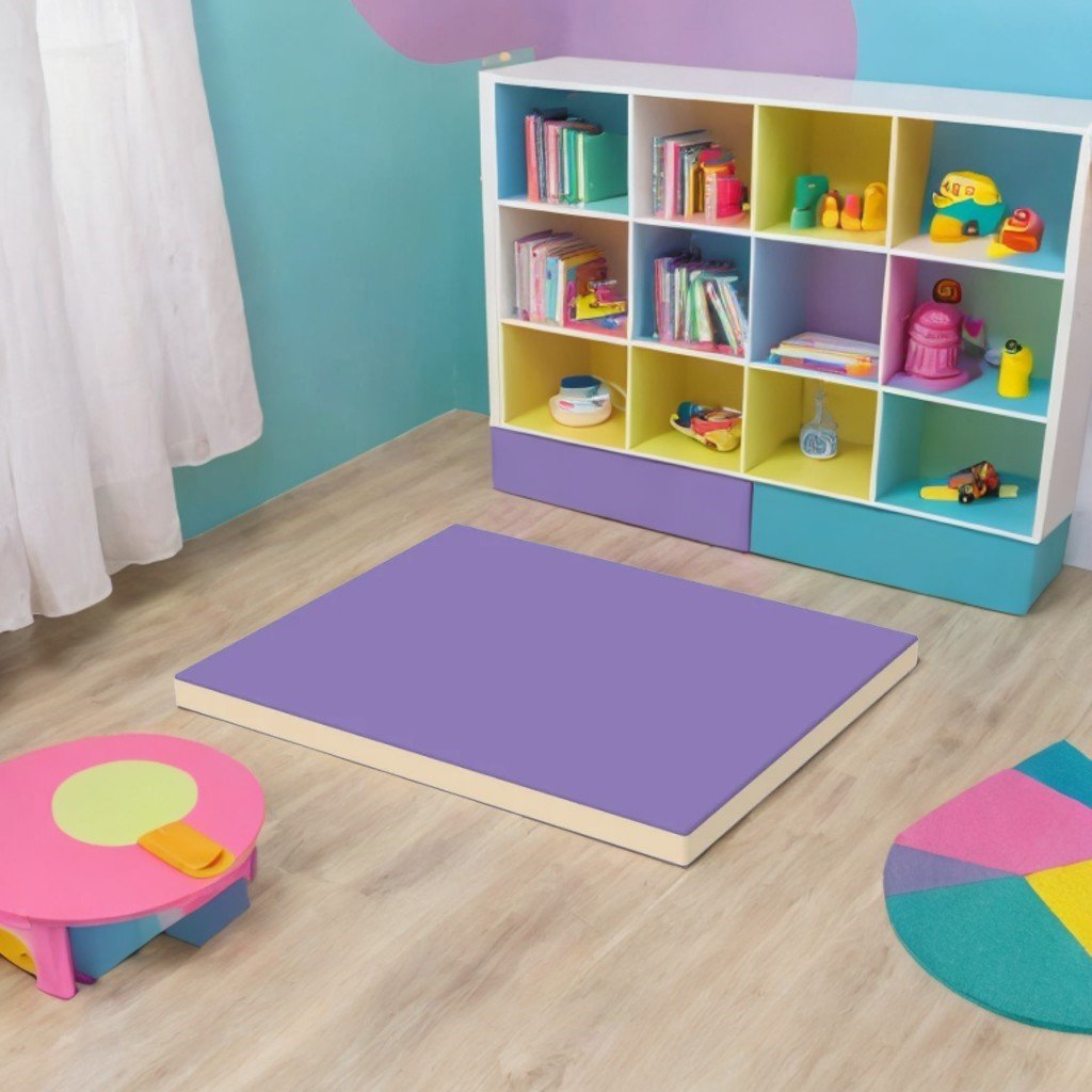 Постелката за гимнастика предпазва детето от падане и натъртвания. Подходящ е за домашна употреба и образователни, развлекателни и здравни заведения. Плътността на порестия каучук е 22 kg/m³.
