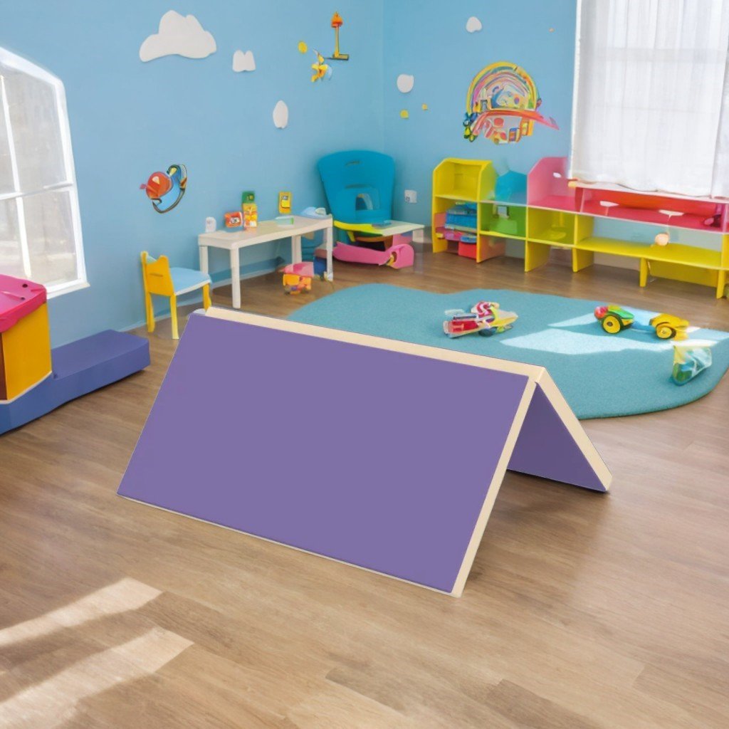 Двойно сгъваемият детски матрак предпазва от падане и натъртвания. Подходящ за домашна употреба, учебни заведения, забавление и здраве. Плътност на порест каучук: 22 kg/m³.