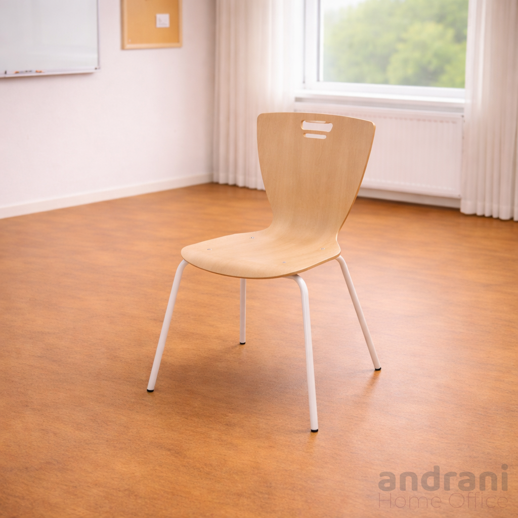 Ученическият стол от огънат шперплат с метална рамка е практично и надеждно решение за обзавеждане на училища, учебни кабинети и зали за обучение. Моделът съчетава устойчивост, комфорт и безопасност, което го прави подходящ за ежедневна интензивна употреба.