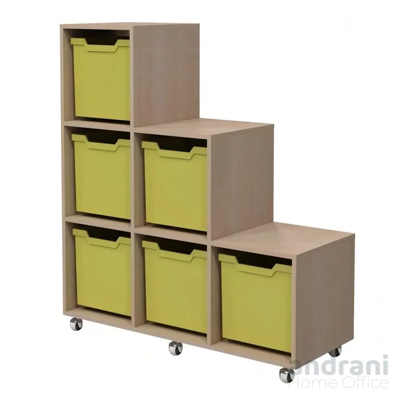 Етажерката разполага с 6 пластмасови тави, които улесняват сортирането и бързия достъп до съдържанието. Благодарение на 6 въртящи се колела, модулът може лесно да се премества според нуждите на помещението.