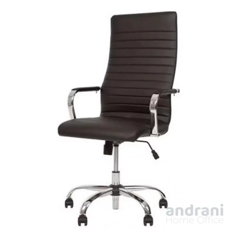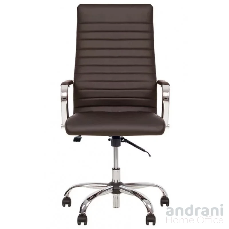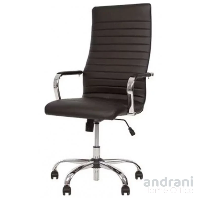 Моделът разполага с метални подлакътници от хромирана стомана с мека обвивка, които осигуряват допълнителен комфорт по време на работа. Конструкцията е проектирана за максимално натоварване до 120 кг, което гарантира надеждност и стабилност.