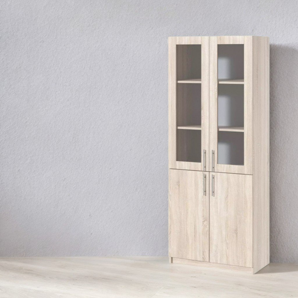 Шкаф 800х400х2000 мм. Меламиново ПДЧ 18 мм, ABS кант (преден 1 мм, вътрешен 0,5 мм), бял PFL гръб 3 мм. Долни врати, с регулируема височина и рафтове, хромирани дръжки, здраво сглобени. Цветове: дъб сонома, бял ясен.